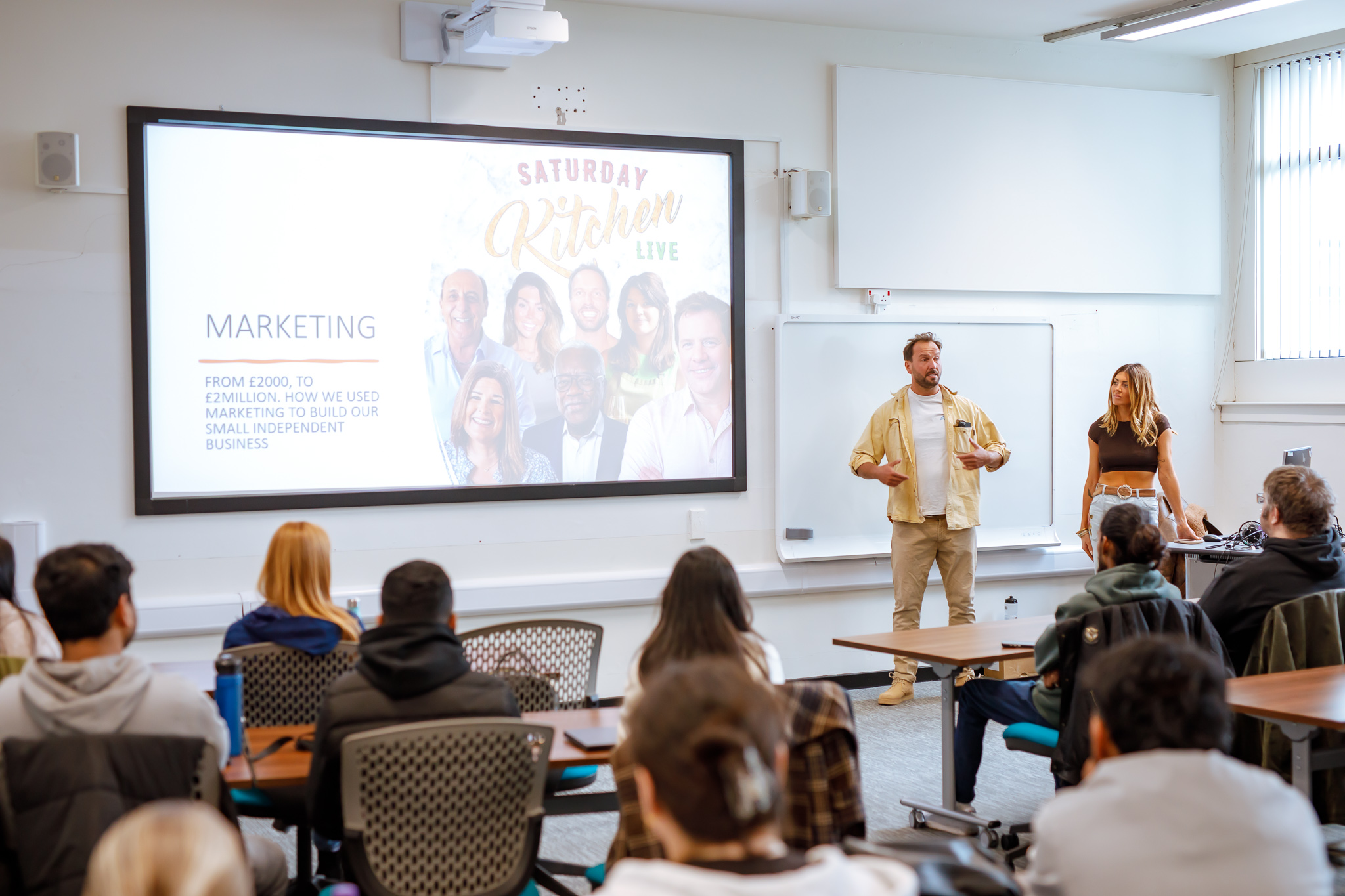 During the lecture, Kate and Sam spoke candidly about their experience of building a business in a competitive industry, discussing both challenges and successes, and outlining how marketing decisions have shaped the growth of the brand. The session concluded with a Q&A, giving students the opportunity to explore practical questions around content creation, brand protection and entrepreneurship.